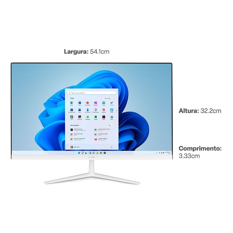 O desempenho notável do All in One Ultra Ultra é possível graças ao novo processador Intel Celeron e o Windows 11 Home. Ideal para tarefas do dia a dia e navegação na internet. Este modelo acompanha uma assinatura de 1 ano do Microsoft 365 Personal que contém as ferramentas do Office. Além disso, você tem acesso a 1TB na nuvem pelo One Drive* Também conta com: