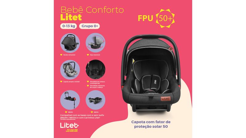 Procurando conforto e segurança para seu bebê? Conheça o Bebê Conforto 0-13kgs Preto Litet, uma solução premium e exclusiva para pais exigentes como você.