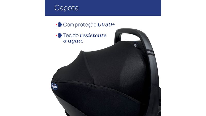 Para maior conforto, a capota de sol com proteção UV50+ e repelente à água protege contra raios solares e chuva leve, enquanto o sistema de ventilação interna mantém a temperatura agradável.