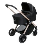 Tem capota resistente à água e com proteção UV50+, que permite passeios mais seguros em qualquer condição climática.