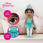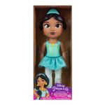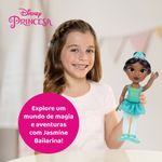 A Boneca Bailarina Princesas Disney Jasmine tem 38 cm de altura, olhos pintados e saia, estilo tutu, em tecido. Uma companheira encantadora para as brincadeiras do dia a dia. Leve Jasmine para onde você for e descubra lugares mágicos juntas!
