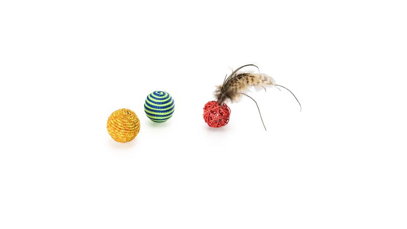 O Conjunto Bolinhas é composto por 3 peças diferentes para animar a brincadeira. Os materiais são distintos entre si, de alta qualidade e não agridem o seu pet. As diferentes texturas despertam o interesse e incentivam os bichanos a brincar.