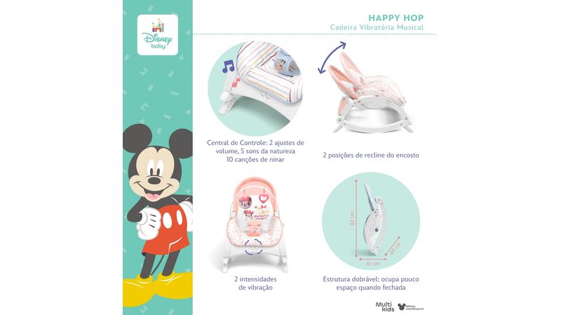Transforme cada momento de descanso e diversão em uma experiência mágica com o Bouncer Happy Hop Disney Baby. Seu bebê vai adorar!