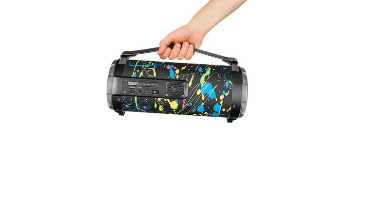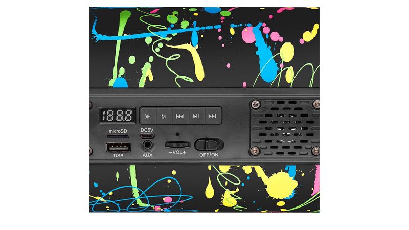 Seus LEDS decorativos nos radiadores passivos deixam sua Paint Blast 80w preparada para animar ainda mais a sua festa! Possui bateria recarregável de 1.500 mAh, com autonomia de até 8 horas, para você aproveitar ao máximo a sua festa, e além disso você pode acompanhar o status da energia através do painel de controle.
