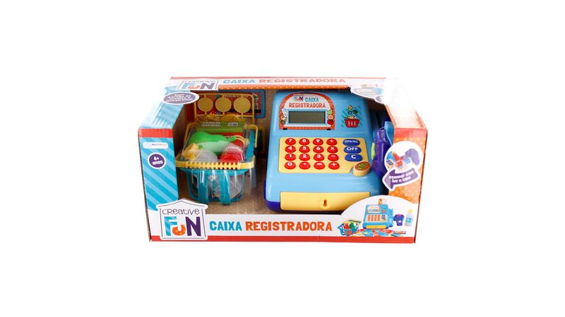 A Caixa Registradora Azul Creative Fun possui tudo para deixar a brincadeira completa: cartão de crédito, dinheirinho, vários produtos e uma calculadora que funciona de verdade!