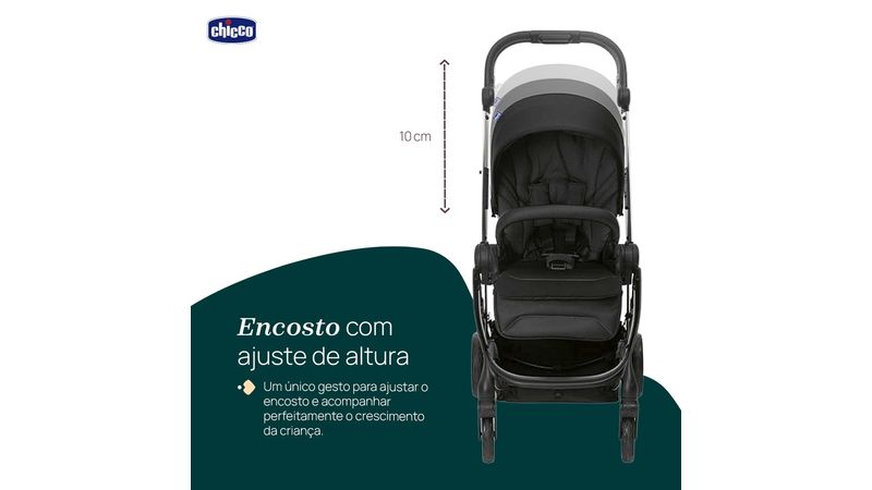 encosto evolutivo e ajustável em três alturas oferece conforto personalizado para cada fase, acompanhando o desenvolvimento do bebê de forma natural e ergonômica. As