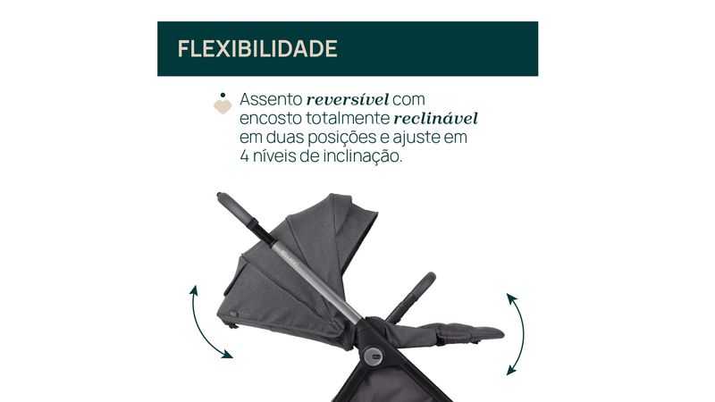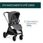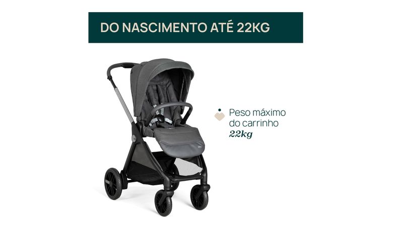 peso máximo de até 22kg, acompanhando o crescimento da criança por muito mais tempo. Seu sistema prático permite manobras suaves e fáceis, proporcionando mais conforto tanto para o bebê quanto para quem conduz o carrinho.