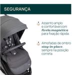 - Conforto para o bebê: assento e acolchoamento ergonômicos.