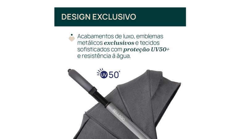 Projetado para uso desde o nascimento, o carrinho Bellagio oferece estrutura robusta, assento confortável e excelente estabilidade, garantindo passeios seguros em diferentes tipos de terreno. Suporta