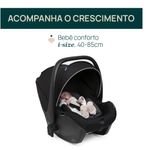 altura entre 40 e 85 cm, sendo ideal para os primeiros meses de vida. Pode ser utilizado tanto no carro quanto acoplado diretamente ao carrinho, contando com estrutura reforçada, acolchoamento confortável e proteção adequada.