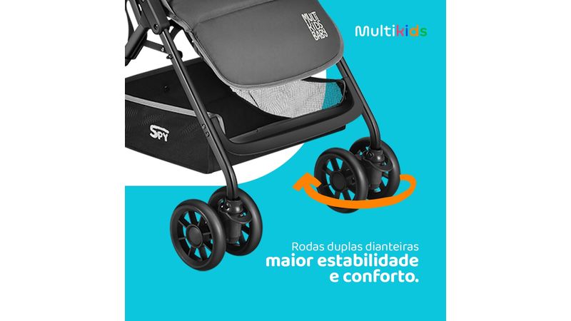 O carrinho de bebê dobrável e compacto Multikids Spy foi desenvolvido para que toda família possa curtir os passeios. Desenvolvido pensando na segurança e conforto da criança, é como uma extensão do colo dos pais.