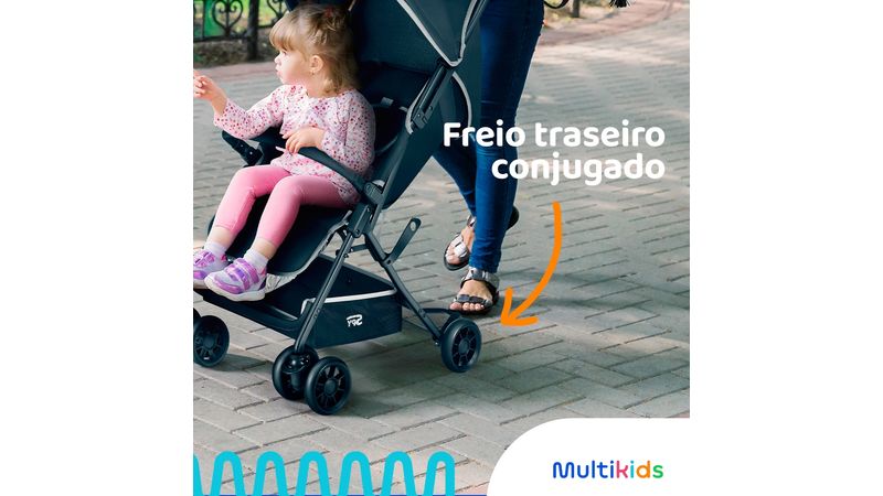 Precisou fazer uma pausa no passeio ou chegou a hora da sonequinha? Com o freio conjugado, você tem a certeza de que o carrinho Multikids Spy vai ficar parado. Com as rodas traseiras e dianteiras travadas pelo freio, seu bebê pode curtir o descanso com segurança.