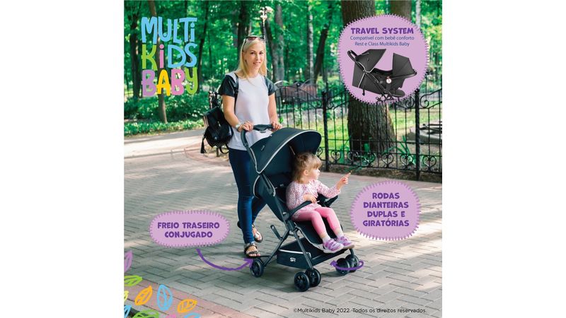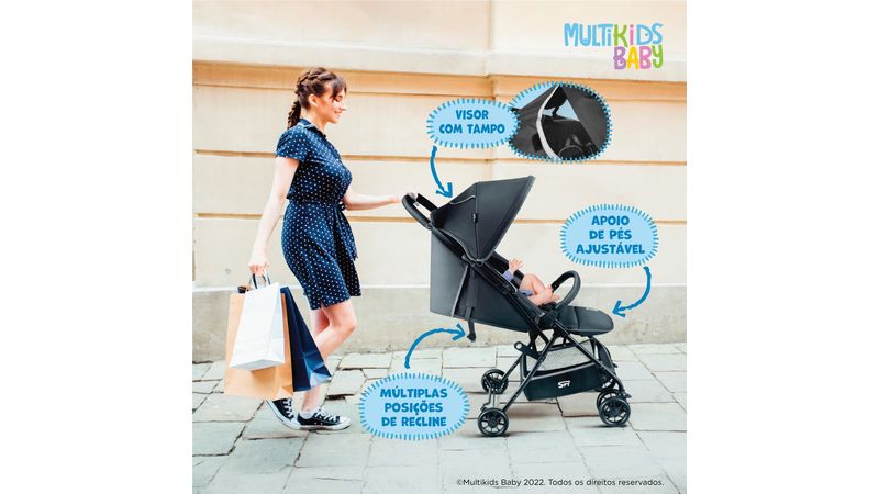 O carrinho de bebê dobrável e compacto Multikids Spy foi desenvolvido para que toda família possa curtir os passeios. Desenvolvido pensando na segurança e conforto da criança, é como uma extensão do colo dos pais.