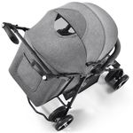 Com apoio de pés ajustável e encosto que reclina em múltiplas posições, o Flick vai de totalmente reclinado na posição berço para uma sonequinha gostosa até a posição vertical, para quem quer curtir o passeio sentado. Seu fechamento é simples e fácil e sua manopla dupla conta com pegadores reversíveis que se adequam à melhor posição para quem o estiver conduzindo. A barra frontal é removível, facilitando na hora de tirar e colocar o bebê do carrinho. A capota é retrátil e estendida protegendo o bebê tanto do sol quanto da chuva quando aberta.