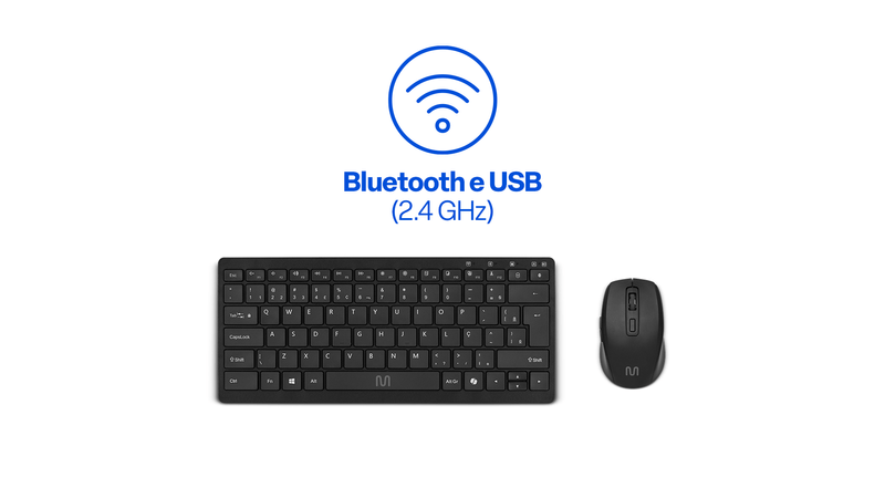 Bluetooth e USB 2.4GHz. Com apenas um clique, é possível alternar entre notebook, tablet ou smartphone, garantindo fluidez e praticidade em diferentes dispositivos e ambientes.