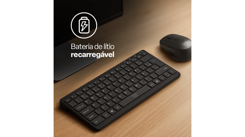 design compacto e silencioso permite trabalhar em qualquer lugar com conforto térmico e tátil, mantendo o foco total mesmo em ambientes compartilhados. Além disso, o combo é equipado com