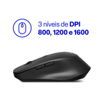 - Mouse com DPI ajustável: níveis de 800, 1200 ou 1600 para maior precisão.