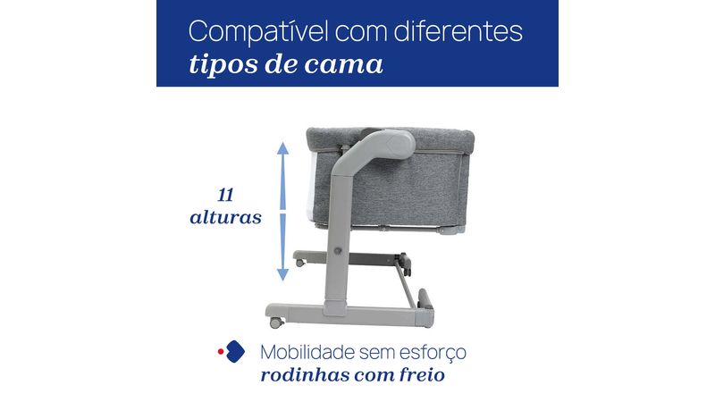 Especialmente projetado para o co-sleeping, este berço permite que o bebê durma ao seu lado com total segurança, facilitando as mamadas noturnas e fortalecendo o vínculo familiar.