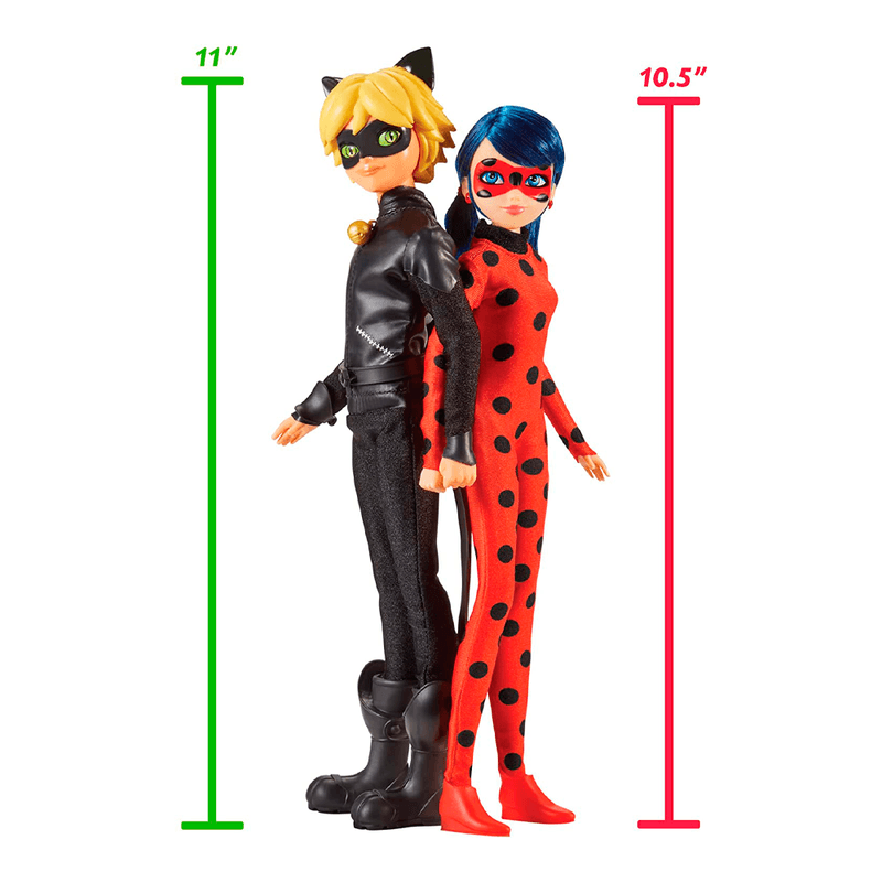 Ladybug e Cat Noir juntam suas forças de heróis para combater os inimigos e salvar a cidade. Os bonecos são vestidos com seus respetivos uniformes de heróis, acompanham acessórios e são articuláveis.