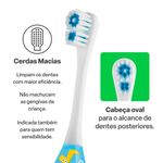 As cerdas macias e delicadas da escova não machucam a boca da criança, proporcionando uma experiência de escovação confortável. Além disso, ela é resistente à água, facilitando a limpeza e podendo ser utilizada no banho com toda segurança.