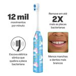 Projetada especialmente para crianças a partir de 3 anos, esta escova é duas vezes mais eficaz do que as escovas convencionais na remoção de placa bacteriana. Com incríveis 15 mil movimentos sônicos por minuto, garante uma higiene completa e gentil.