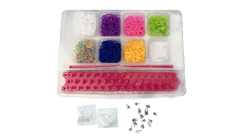 Com 1400 elásticos em 7 cores diferentes e 15 pingentes super estilosos, você pode criar pulseiras únicas e que combinam com qualquer ocasião! Faça você mesma: exercita a criatividade e desenvolve habilidades manuais das crianças. Acompanha manual de instruções com passo-a-passo e inspirações de designs.