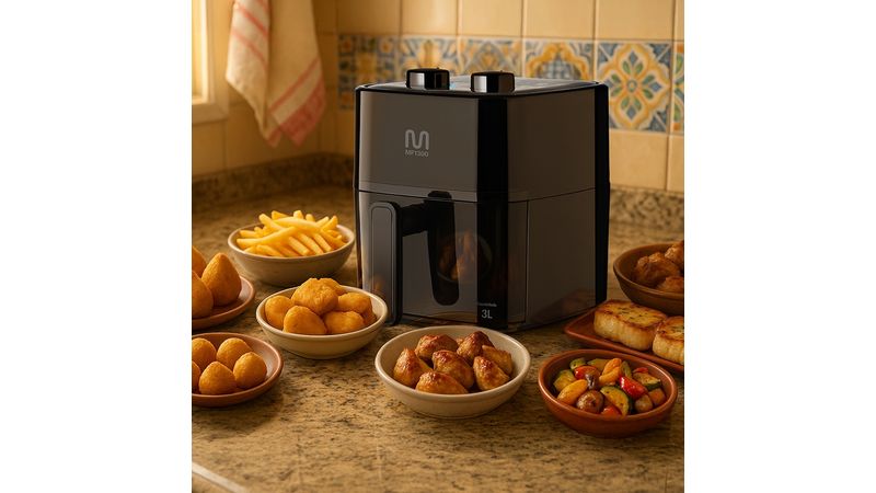 Prepare refeições deliciosas e saudáveis com a Air Fryer Multi MF1300, o eletrodoméstico perfeito para quem busca praticidade, sabor e uma alimentação mais leve. Com 3 litros de capacidade e potência de 1200W, ela é ideal para preparar desde pequenos petiscos até refeições completas para toda a família, sempre com rapidez e eficiência.