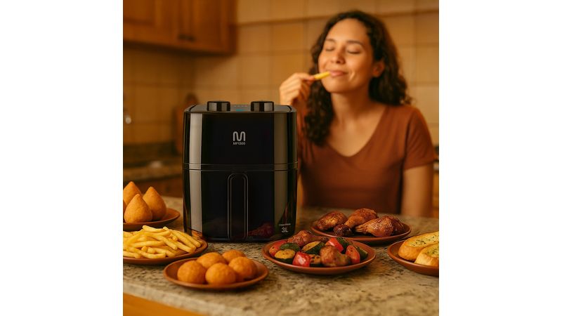 Prepare refeições deliciosas e saudáveis com a Air Fryer Multi MF1300, o eletrodoméstico perfeito para quem busca praticidade, sabor e uma alimentação mais leve. Com 3 litros de capacidade e potência de 1200W, ela é ideal para preparar desde pequenos petiscos até refeições completas para toda a família, sempre com rapidez e eficiência.