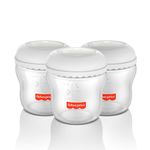 Com 3 unidades de 150 ml cada, o kit de frascos para armazenar leite Mom’s Essentials Fisher Price é ideal para manter a praticidade do dia a dia – O mesmo frasco usado no extrator pode ser armazenado no freezer e acoplado à mamadeira para ser aquecido e oferecido ao bebê. A área lavável para rotulagem permite que informações importantes como o nome, data e horário da extração sejam anotadas e a tampa de rosquear totalmente vedada impede vazamentos e proporciona tranquilidade na hora de transportar o leite. Totalmente livres de BPA, os frascos são adequados para freezer, micro-ondas e máquina de lavar louças (prateleira de cima).