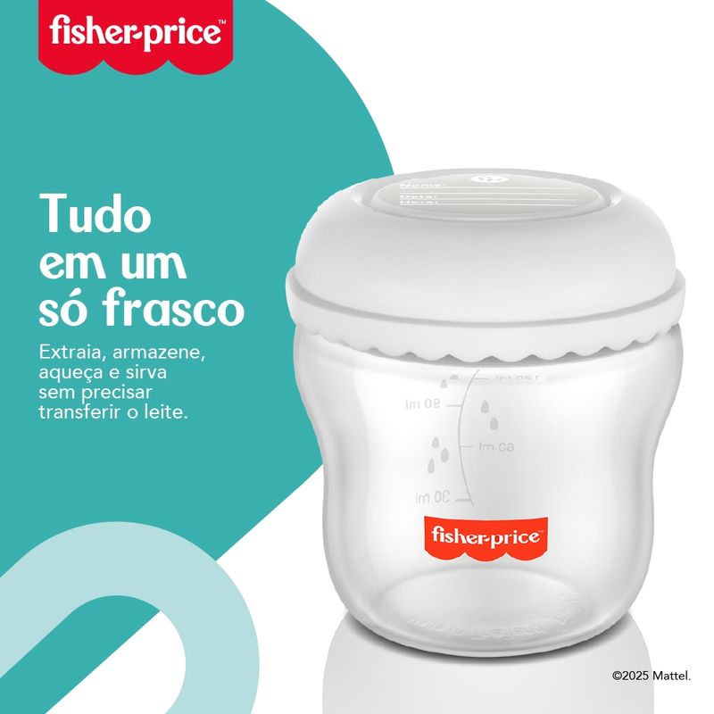 Com 3 unidades de 150 ml cada, o kit de frascos para armazenar leite Mom’s Essentials Fisher Price é ideal para manter a praticidade do dia a dia – O mesmo frasco usado no extrator pode ser armazenado no freezer e acoplado à mamadeira para ser aquecido e oferecido ao bebê. A área lavável para rotulagem permite que informações importantes como o nome, data e horário da extração sejam anotadas e a tampa de rosquear totalmente vedada impede vazamentos e proporciona tranquilidade na hora de transportar o leite. Totalmente livres de BPA, os frascos são adequados para freezer, micro-ondas e máquina de lavar louças (prateleira de cima).