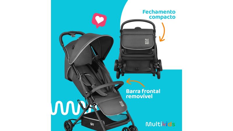 O Carrinho de Bebê Multikids Spy foi criado para proporcionar passeios mais leves, seguros e confortáveis desde os primeiros dias de vida do bebê. Com estrutura compacta e design funcional, ele atua como uma extensão do colo dos pais, garantindo aconchego para a criança e praticidade total no dia a dia.