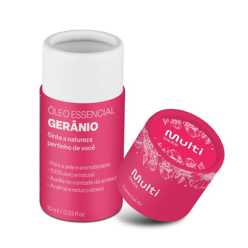 - Gerânio (Equilíbrio e Conforto): Conhecido como o óleo da feminilidade, auxilia na redução da ansiedade e do estresse. Na pele, ajuda a controlar a oleosidade e possui ação anti-inflamatória.