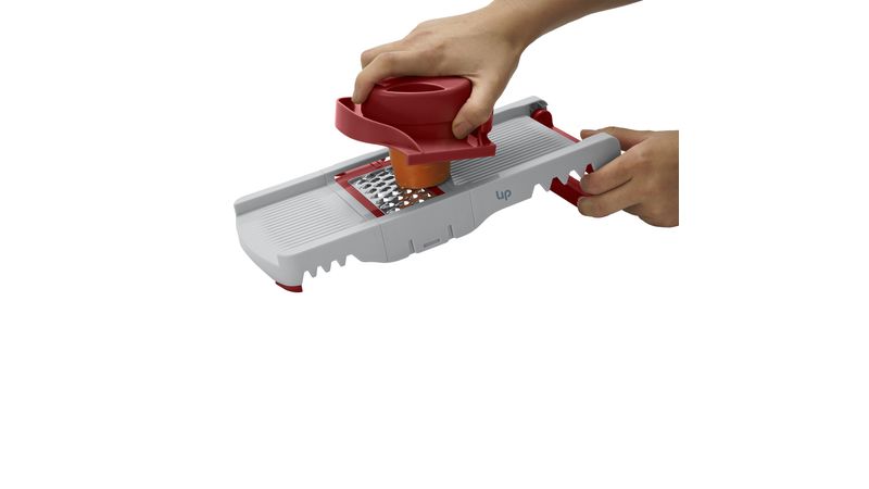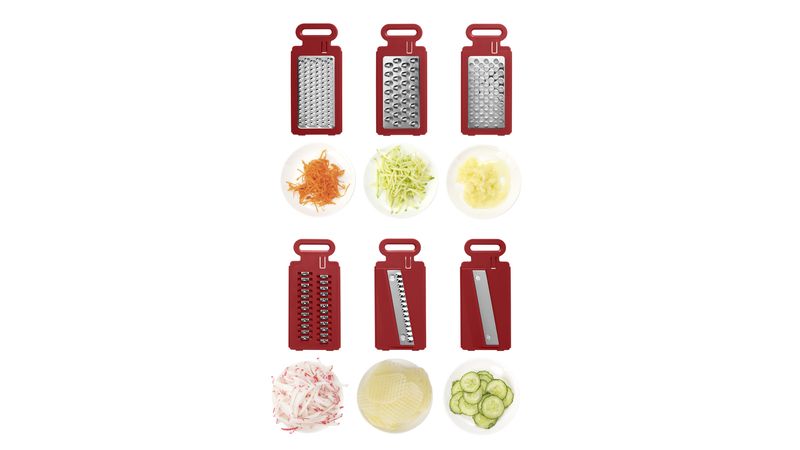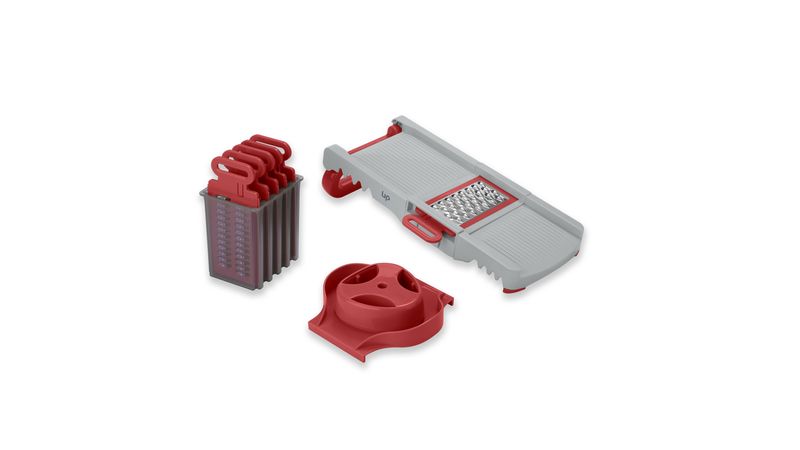 Incremente sua receita com um queijo ralado, complete aquela salada com legumes e verduras cortadinhos e faça uma salada de frutas bem fatiadas. O produto acompanha protetor de mão, estojo acrílico para organizar os 6 tipos de lâminas além de ter o corpo dobrável para te ajudar na hora de guardá-lo.