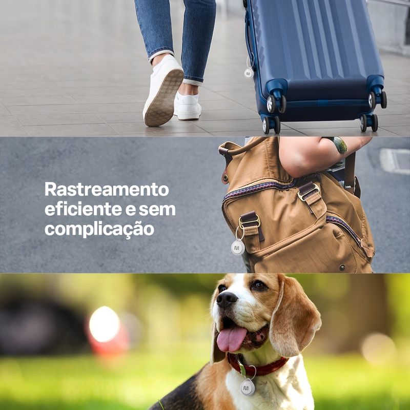 O design compacto e elegante permite prender o rastreador a qualquer objeto: chaves, bolsas, carteiras, mochilas, malas, coleiras de pets e até mochilas infantis, oferecendo mais tranquilidade aos pais em passeios e ambientes movimentados.