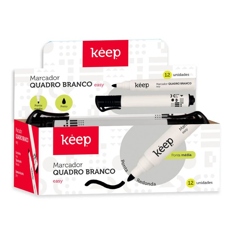 Pincel Marcador de Quadro Branco Easy 12 Unidades Preto Keep - MR009
