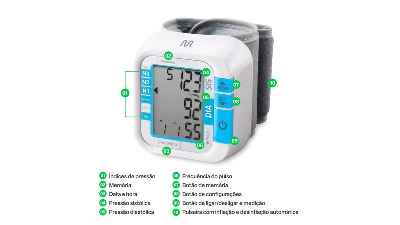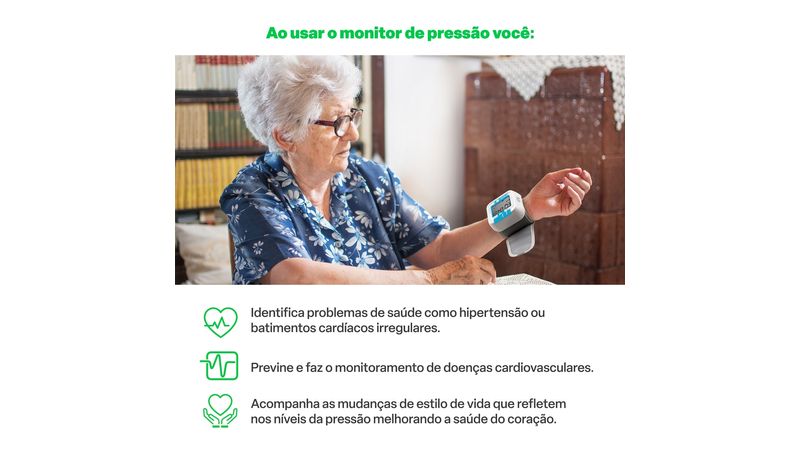 O Monitor de Pressão Arterial de Pulso é a solução definitiva para um acompanhamento preciso e prático da sua pressão arterial.