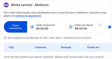 Acompanhe seu saldo com facilidade: entre no seu cadastro e verifique o seu saldo e o histórico de cashback na seção “Minha Carteira” em “Minha Conta”.