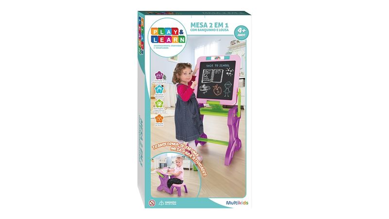 A Mesa de Atividades Infantil 2 em 1 Play & Learn é ideal para crianças a partir de 4 anos que desejam aprender e se divertir ao mesmo tempo.