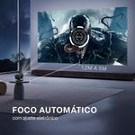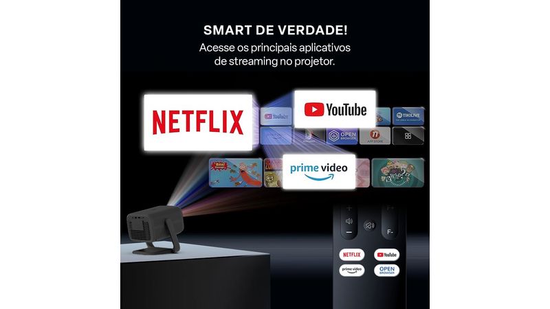 Ajuste a imagem com perfeição sem sair do sofá! O foco eletrônico pode ser controlado remotamente, proporcionando praticidade e precisão. O controle remoto incluso vem com botões de atalho para Netflix, Youtube e Prime Video, oferecendo acesso rápido e fácil aos seus aplicativos preferidos.