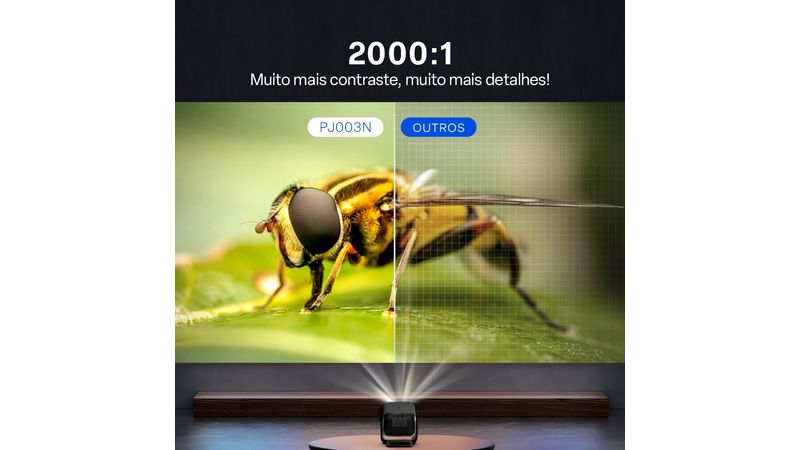 O PJ300N oferece suporte a HDR10 e Dolby Audio, proporcionando cores mais vivas, contraste acentuado e um som envolvente que te coloca no centro da ação. A lâmpada LED de longa duração, com até 30.000 horas, garante anos de entretenimento sem preocupações.