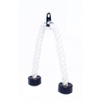 O Puxador Corda para Tríceps é confeccionado com corda torcida de polietileno, presilha de aço cromado e pegadas de PVC injetado.