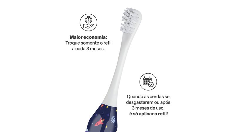 O refil para escova Multi dental elétrica infantil garantirá todos os benefícios de uma escovação eficaz até a próxima troca, além de trazer muito conforto na hora escovação.