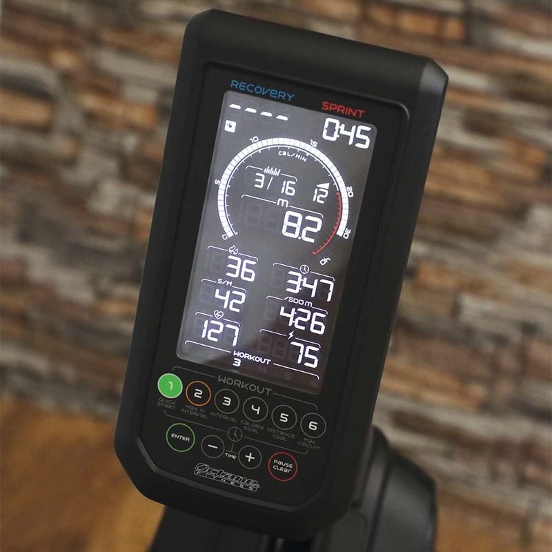 Retro iluminado para facilitar a leitura, o console LCD superdimensionado de 7 polegadas apresenta um medidor de calorias dinâmico que mostra simultaneamente aos usuários seus melhores e atuais esforços como incentivo para continuar se esforçando durante todo o regime. Métricas de desempenho em tempo real, incluindo braçadas por minuto, watts, distância, tempo, calorias e frequência cardíaca, também alimentam a motivação.