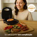 - Versatilidade 2 em 1: Pode ser usada como sanduicheira ou grill. Prepare lanches e grelhados de maneira prática e rápida, sem complicação.