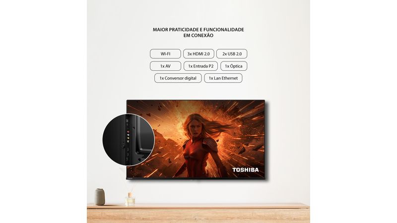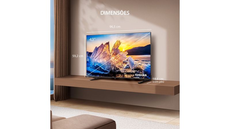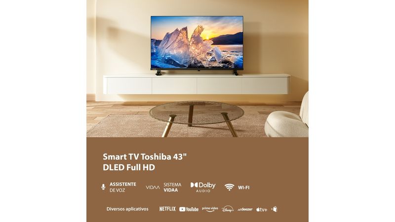 A Smart TV 43” Toshiba combina qualidade de imagem e som superiores com um design elegante e funcionalidades práticas. Ela é fácil de usar e integra perfeitamente qualquer ambiente.