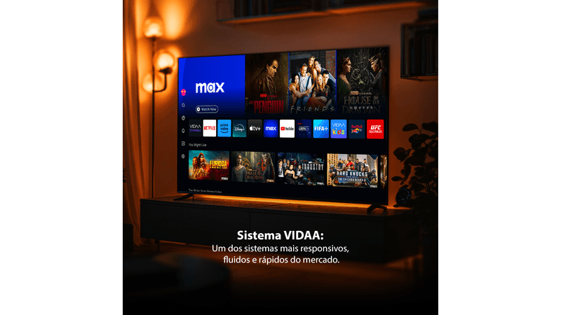 - Navegação Simplificada: O sistema operacional VIDAA oferece uma interface rápida, amigável e altamente customizável para uma experiência de uso sem complicações.