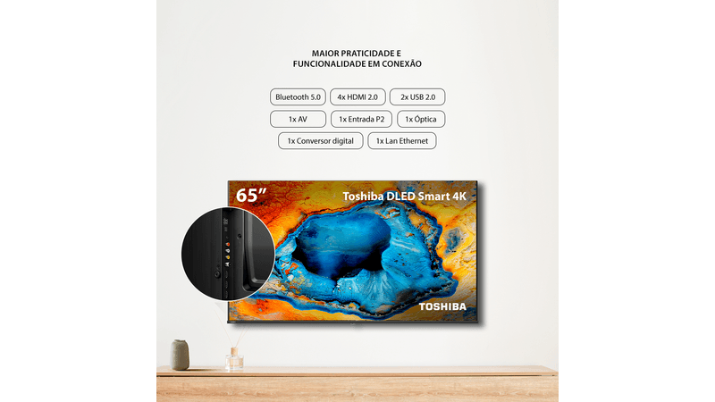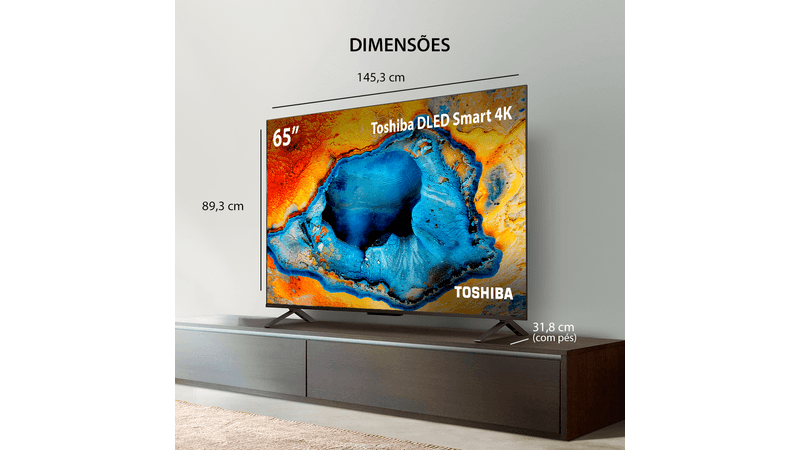 - Qualidade de Imagem Inigualável: Desfrute de imagens excepcionais com a tela de 65 polegadas DLED 4K da Toshiba, oferecendo detalhes nítidos e cores vibrantes.