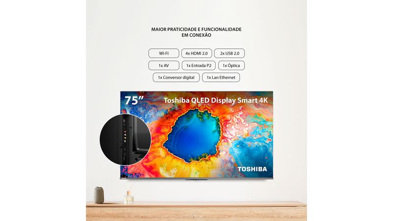A Smart TV 75 Polegadas Toshiba transporta você para dentro da tela com suas imagens incrivelmente realistas e detalhadas!