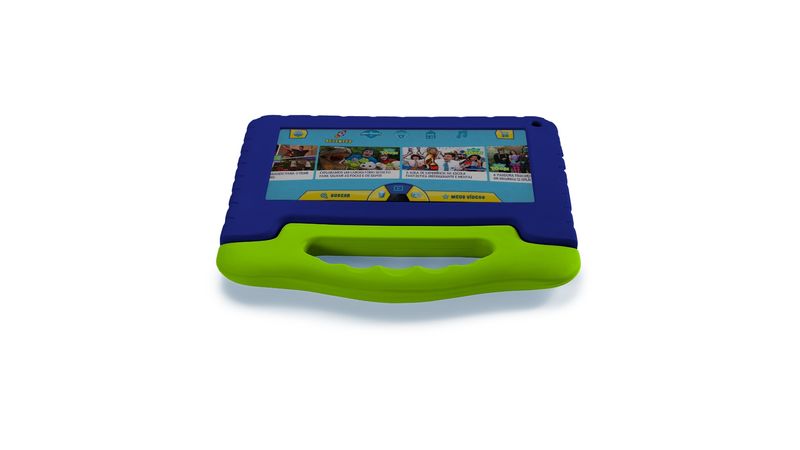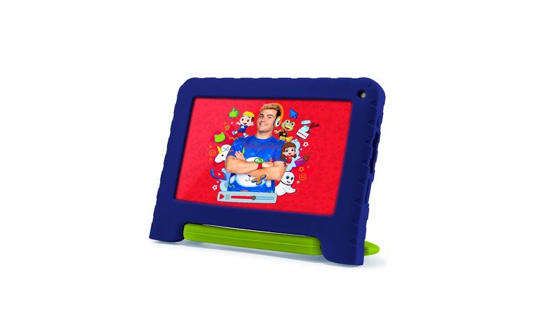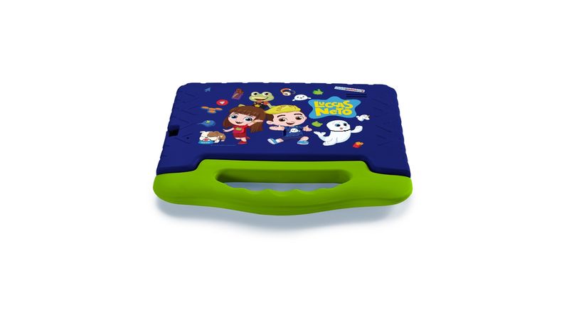 O Tablet Infantil Luccas Neto vem com uma case emborrachada e com alça que protege o dispositivo e garante mais conforto e segurança.