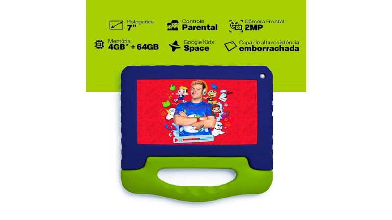 O Tablet Infantil Luccas Neto garante diversão e desenvolvimento! Entretenimento e muito mais em um tablet feito para o uso infantil.